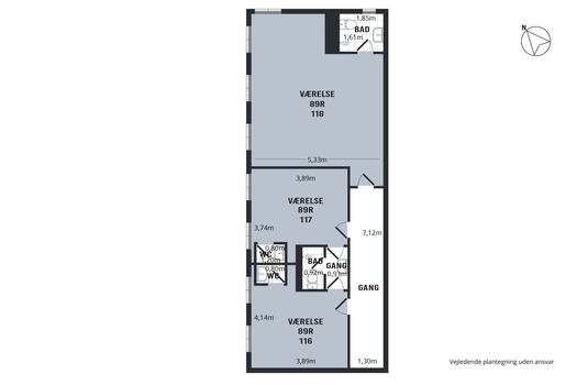 Medium enkeltværelse med eget trinettekøkken. Bad/toilet deles med naboværelset.